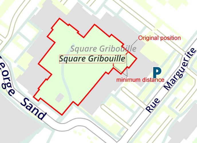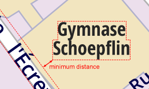 It can also avoid, at the user’s choice, symbols, curves or areas depending on their symbology. For example, it avoids roads but may be placed on some buildings.