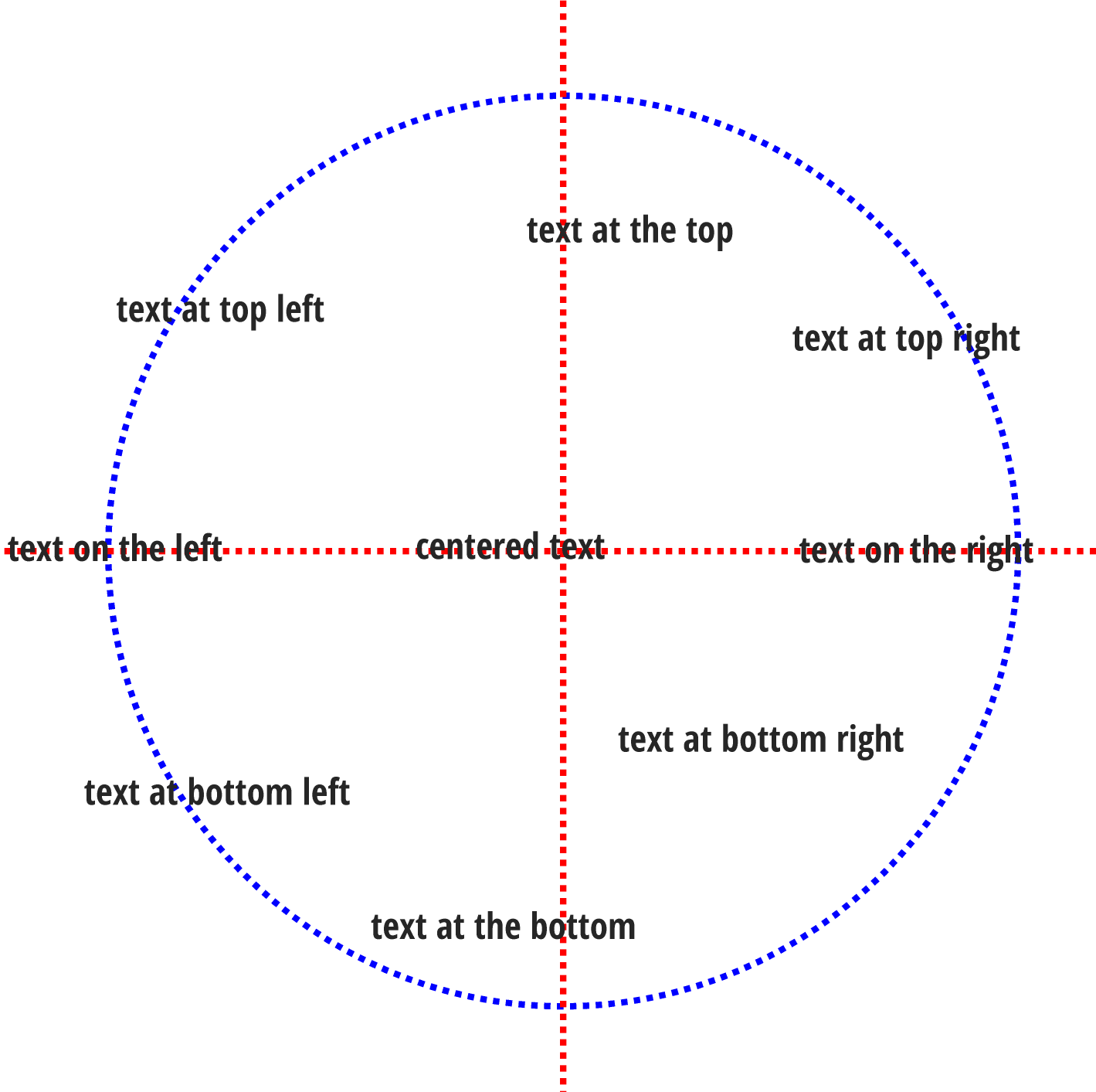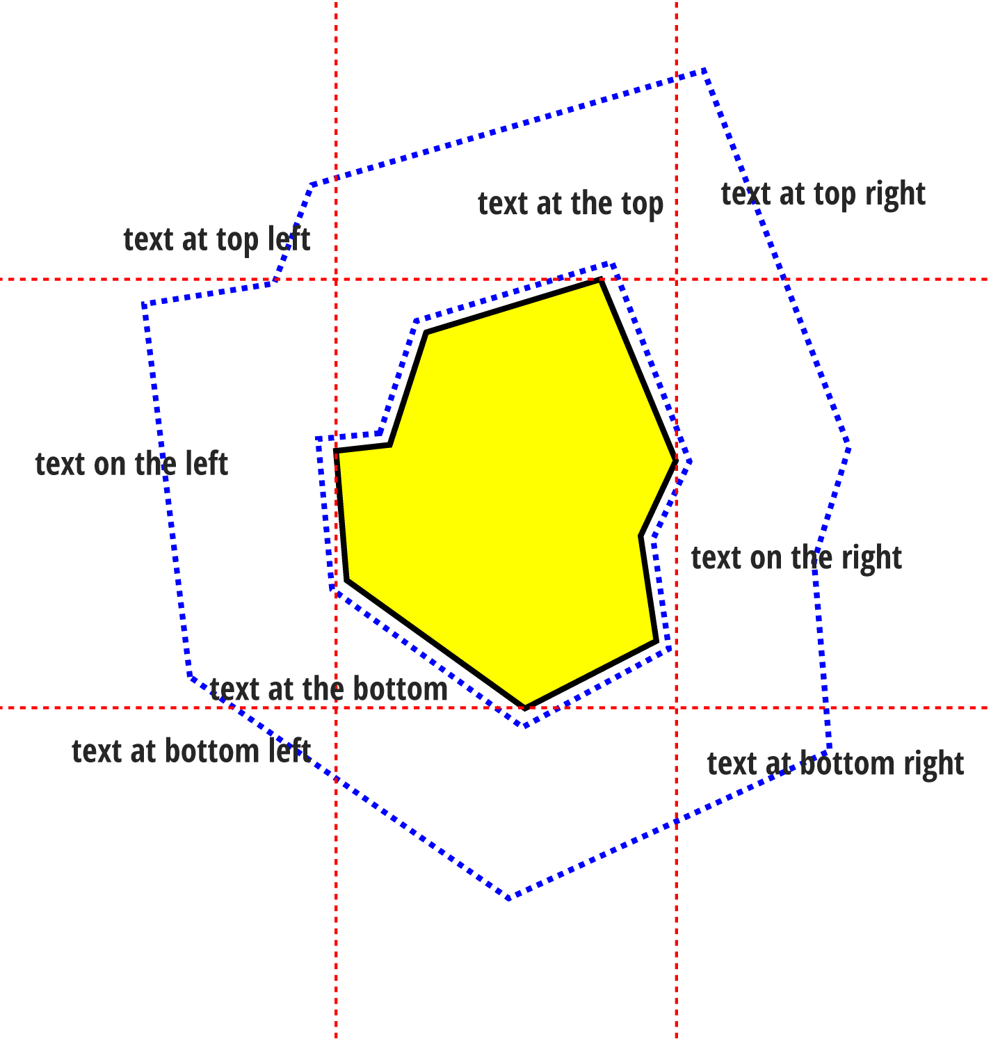 The label is centered if it covers the point. It is top if it intersects the upper vertical segment, and similarly bottom, right and left. There remain 4 zones, namely top‑left, top‑right, bottom‑left and bottom‑right.