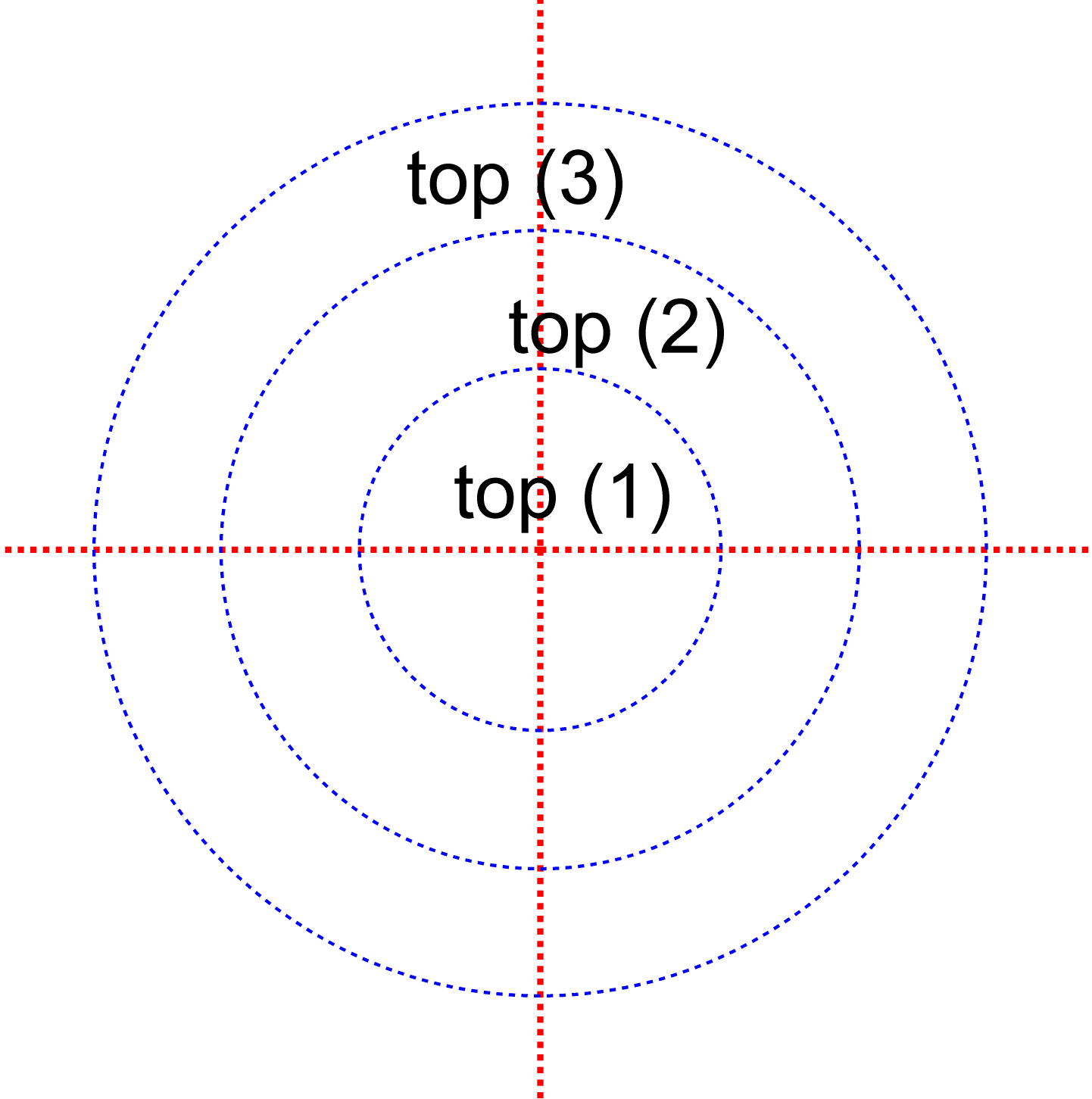 The algorithm can now order its choices. It will attempt to place the label without modification in all zones of the first concentric circle. Then it repeats with the first modification, then the second and so on. And finally it repeats with the zones of the next concentric circles.