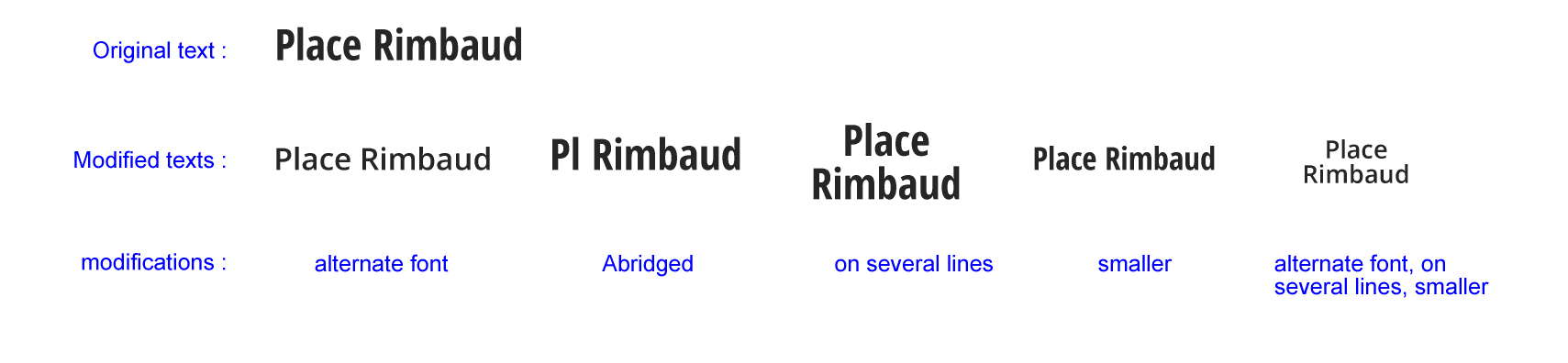 For example we have the original label, then abbreviated, on two lines, abbreviated and on two lines, reduced, reduced and abbreviated, reduced and on two lines … which gives: