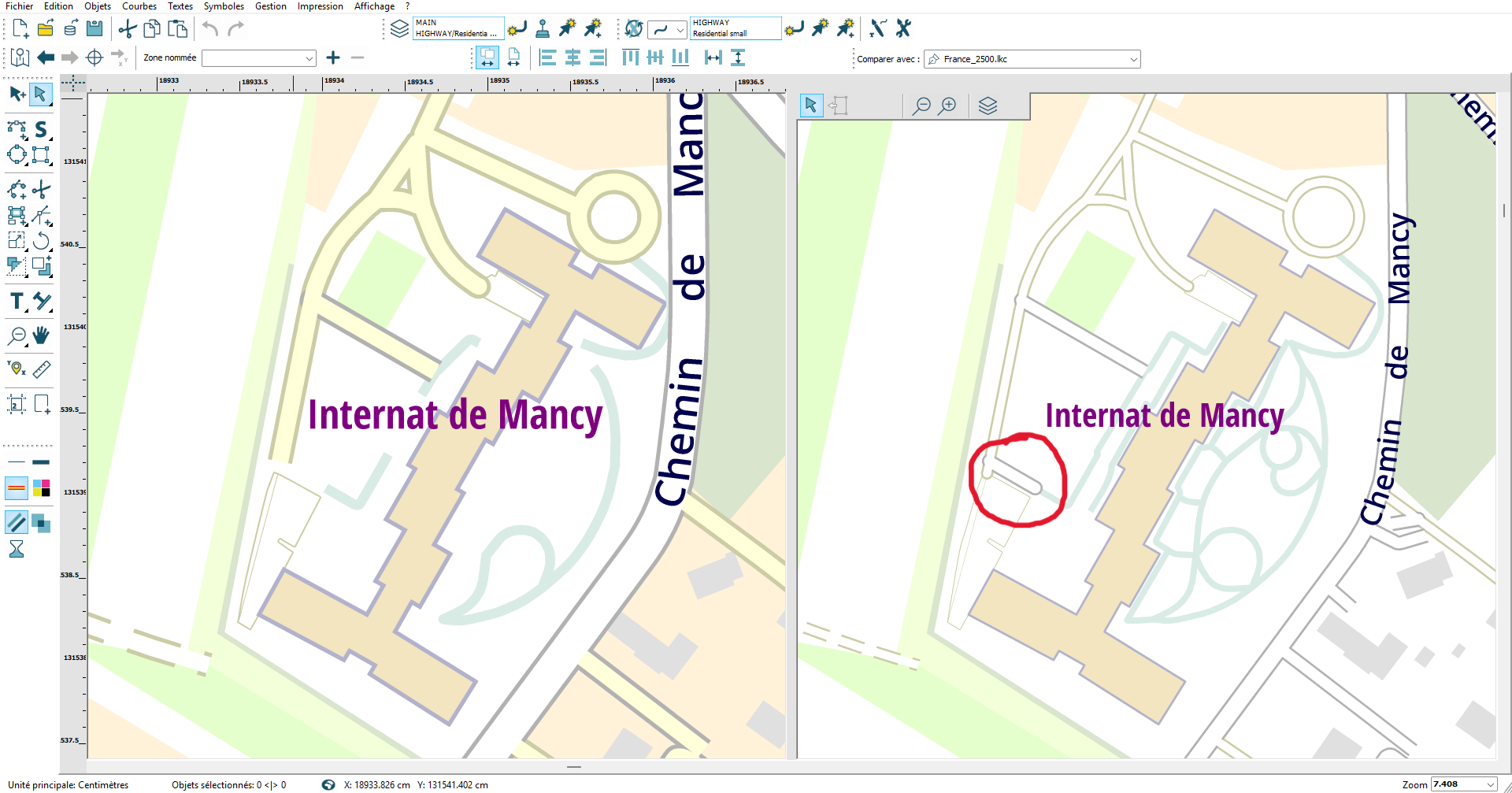 Voici un exemple avec une carte au 2500 et celle par comparaison au 10000.