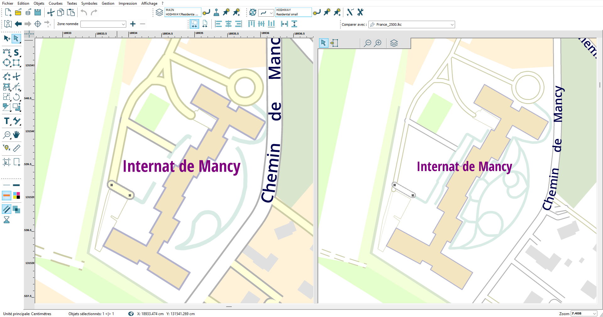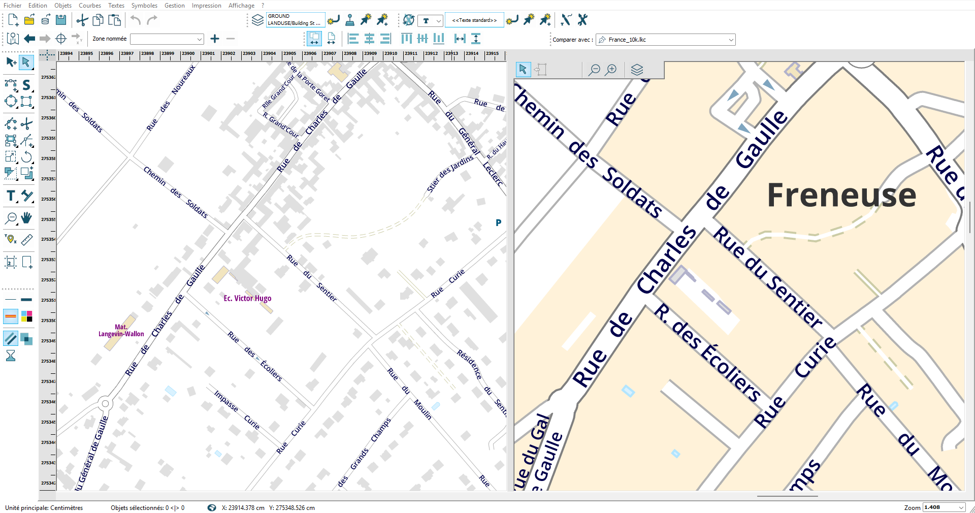 Activez le mode « double vue » et le résultat se présente avec votre carte en édition à gauche et le document de comparaison à droite.
