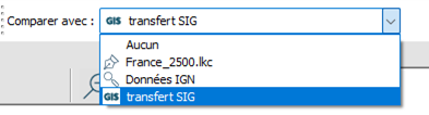 Un même document LorikCartographer peut être associé à plusieurs documents de comparaisons et plusieurs jeu de données SIG. Le choix des données de comparaison à afficher est modifiable à tous moments grâce au menu :