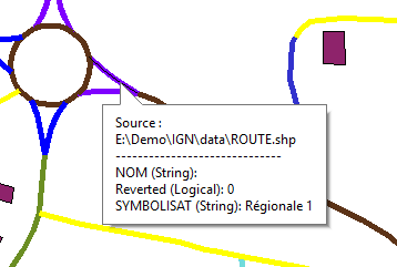 Grâce à des info-bulles vous pouvez aisément connaître les attributs d’une entité sélectionnée :
