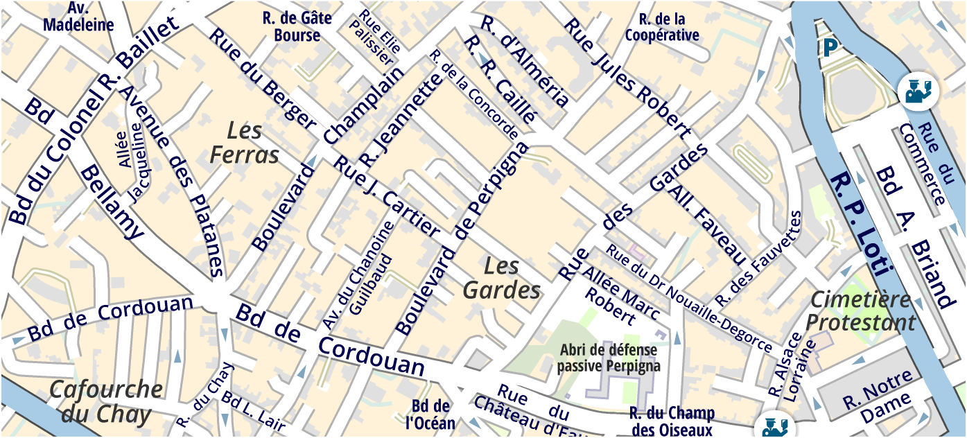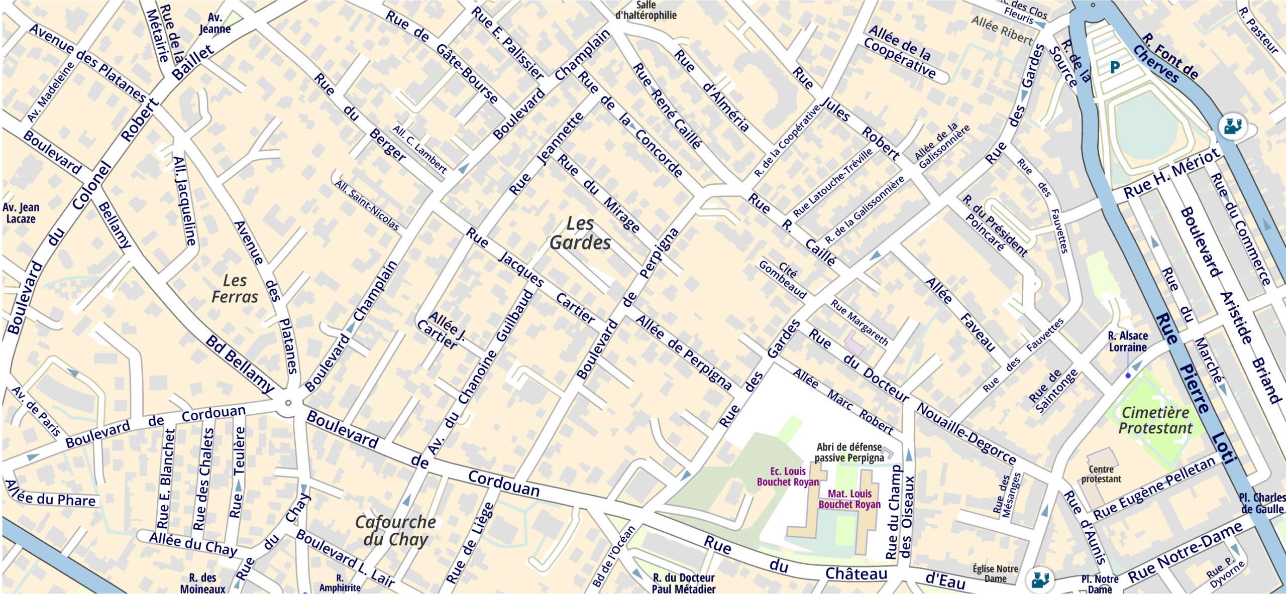 De façon similaire au placement de texte sur courbe, il se configure par des paramètres de répétition et de changement de taille. Le symbole utilisé , au choix de l’utilisateur, profite de toute la richesse de la charte graphique. Le placement se fait en tenant compte des textes sur courbes et des autres obstacles possibles.