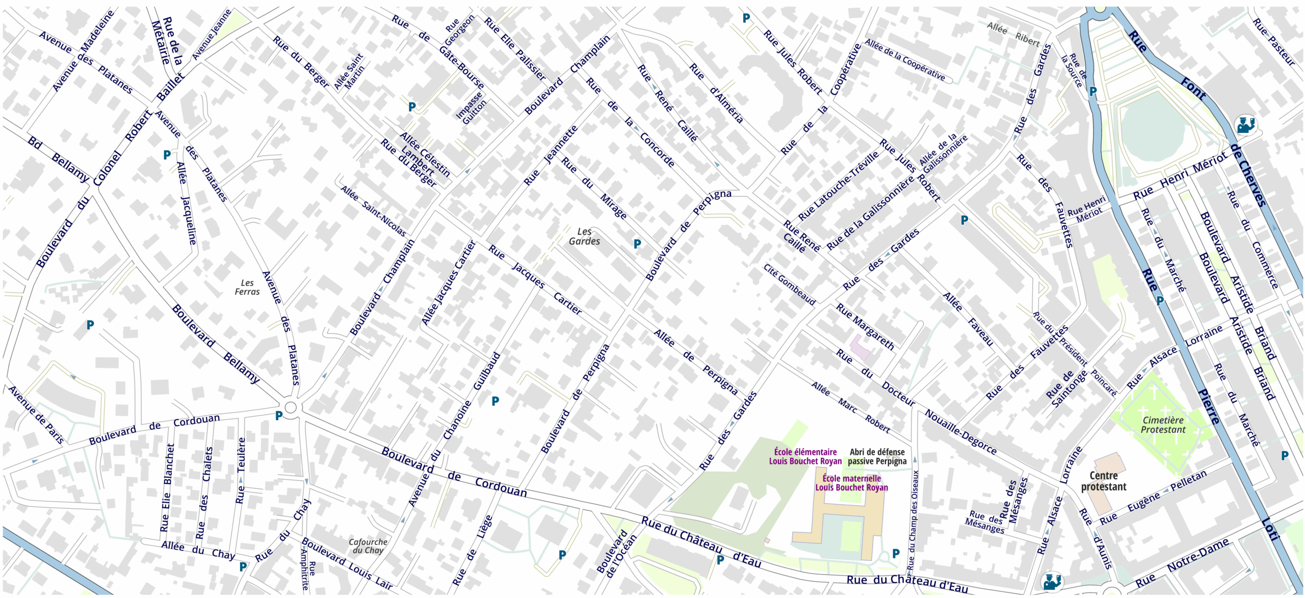 Pour mettre en évidence la puissance de l’algorithme, voici trois placement de le même zone, avec une symbologie proche, mais à des échelles différentes :