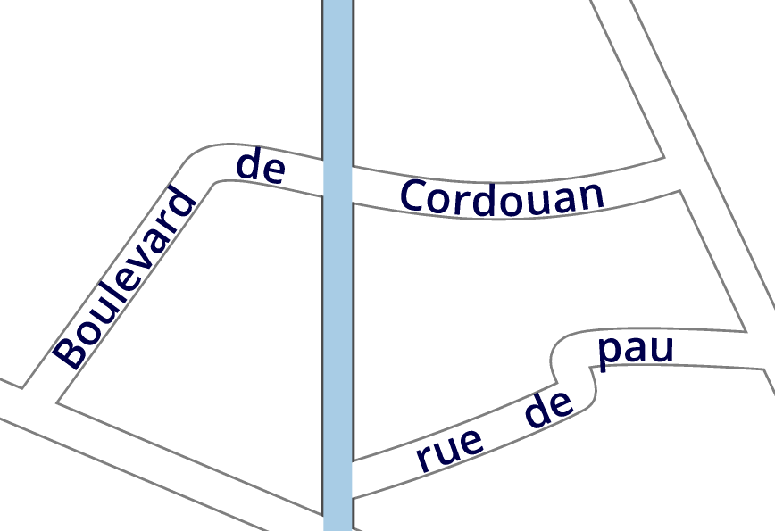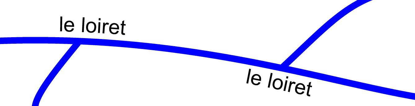 Un texte sur courbe sera placé de façon à éviter des textes à plat déjà présents, et au choix de l’utilisateur  des symboles, des courbes ou des surfaces en fonction de leur symbologie.