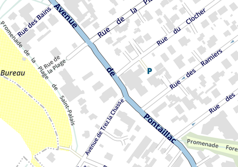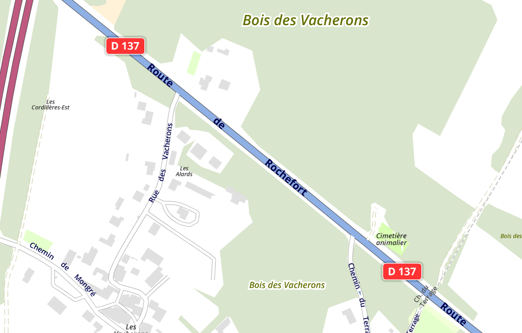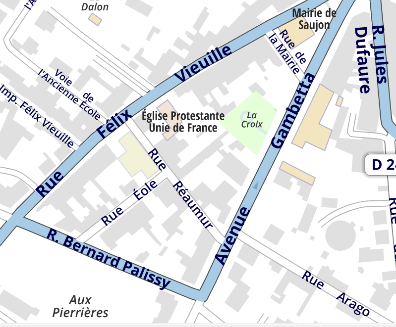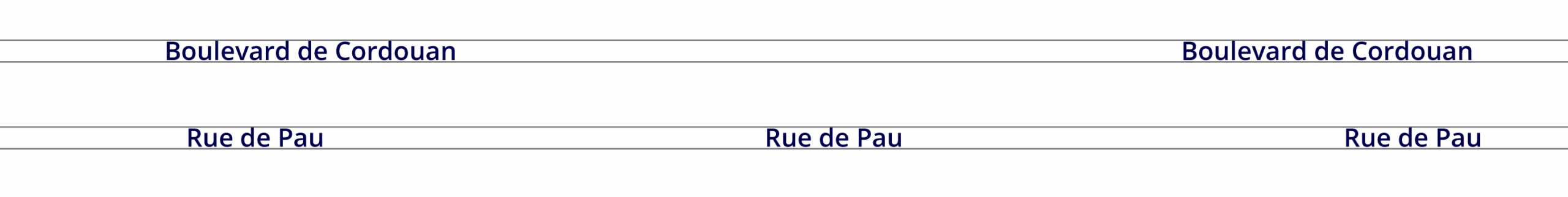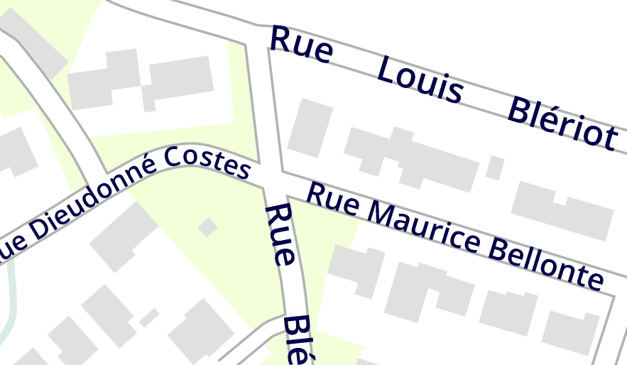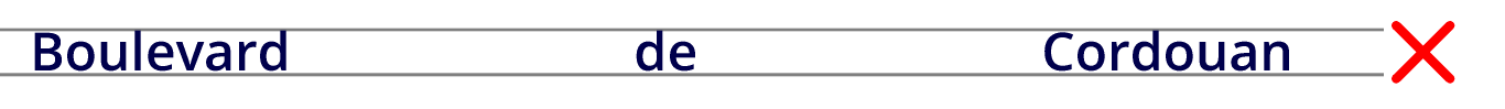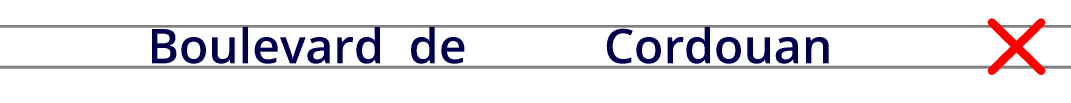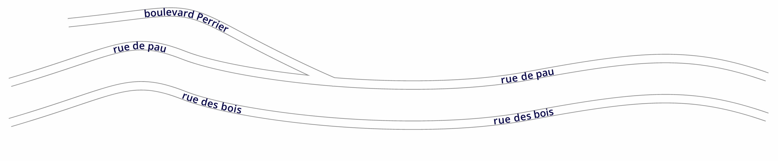 Dans l’exemple suivant, on voit que la route nationale est prioritaire pour le placement et s’autorise également des écarts entre mots plus importants :