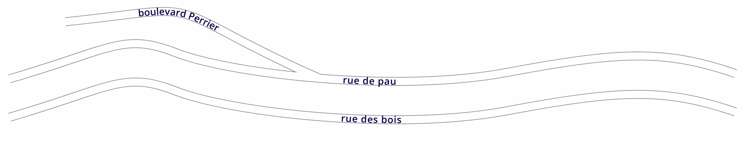 Placer un texte sur une courbe peut sembler simple, mais la forme variée des courbes et la complexité du réseau, la densité des textes, les obstacles à l’écriture comme par exemple des symboles ou des textes à plat, la pertinence et l’importance de l’information sont tout un tas de contraintes qu’il va falloir prendre en compte.