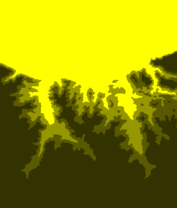Il n’y a qu’une couleur pour toute valeur de luminosité, le résultat ne met donc en évidence que les plages d’altitude :