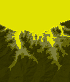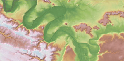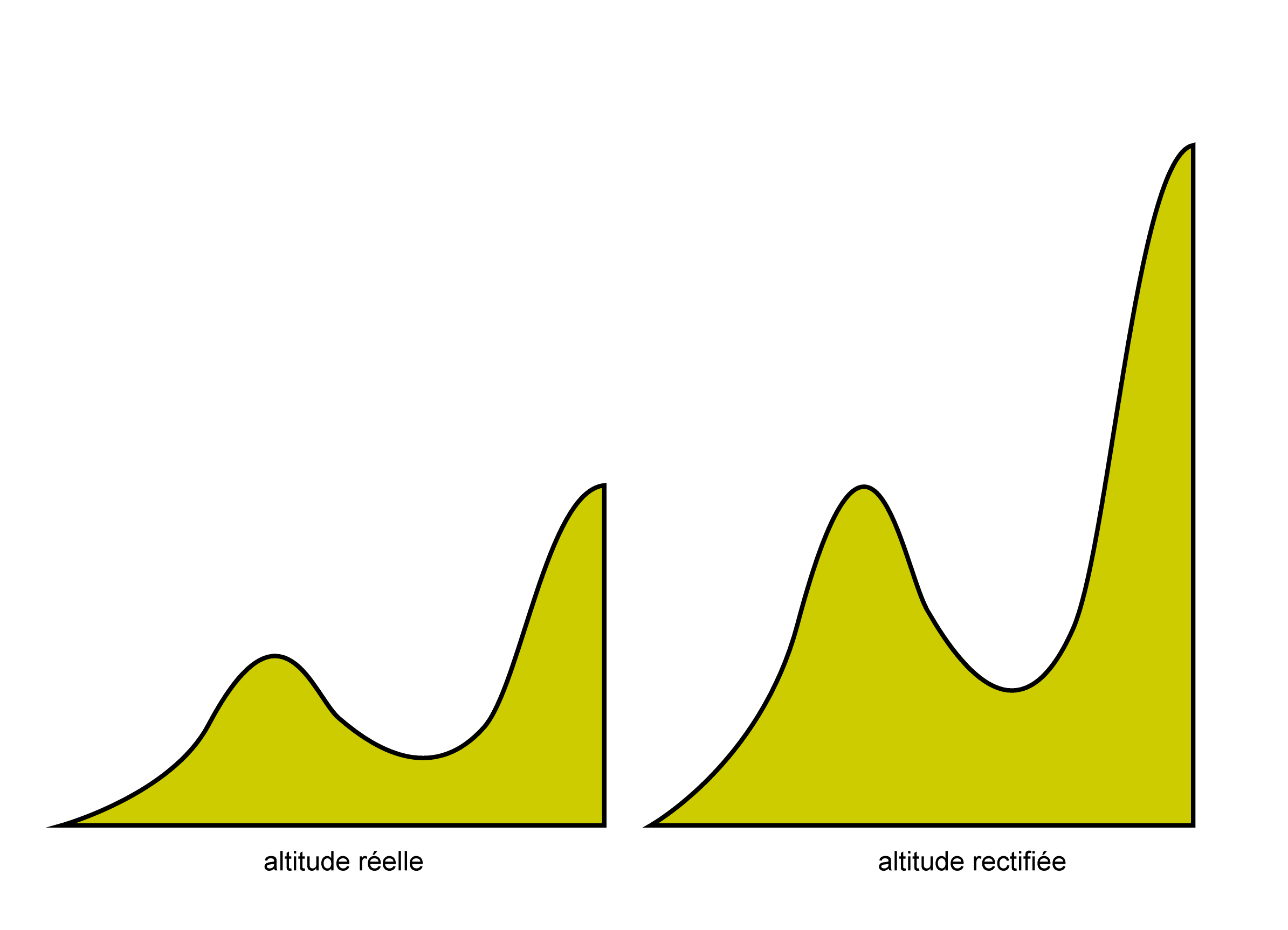 Il arrive que les MNT aient été définis avec des valeurs d’altitude de précision limitée, ce qui donne des surfaces comme ici, avec notamment de nombreux aplats :