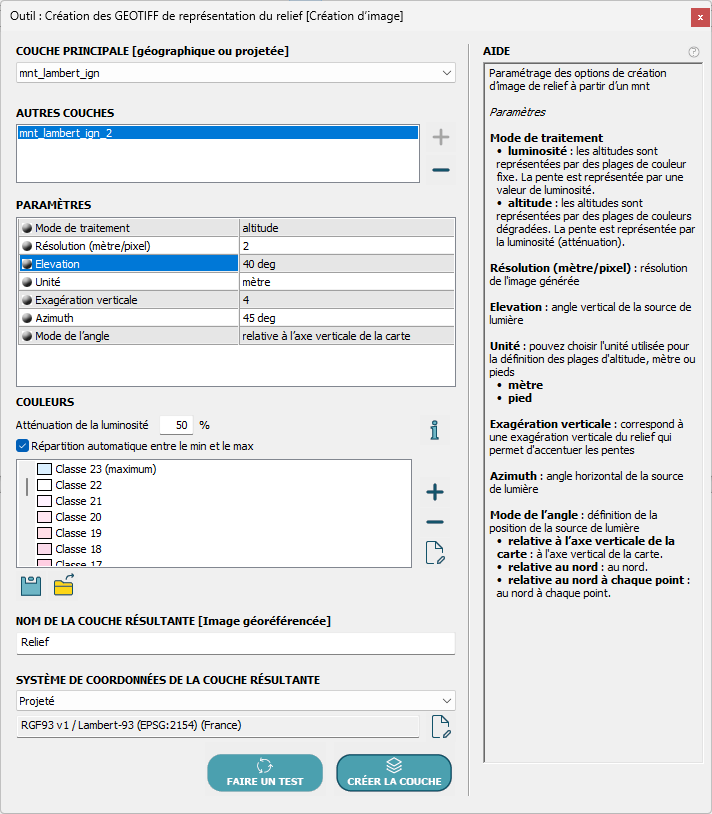 MNT ⇒ Création d’image ⇒ Création des GEOTIFF de représentation du relief.